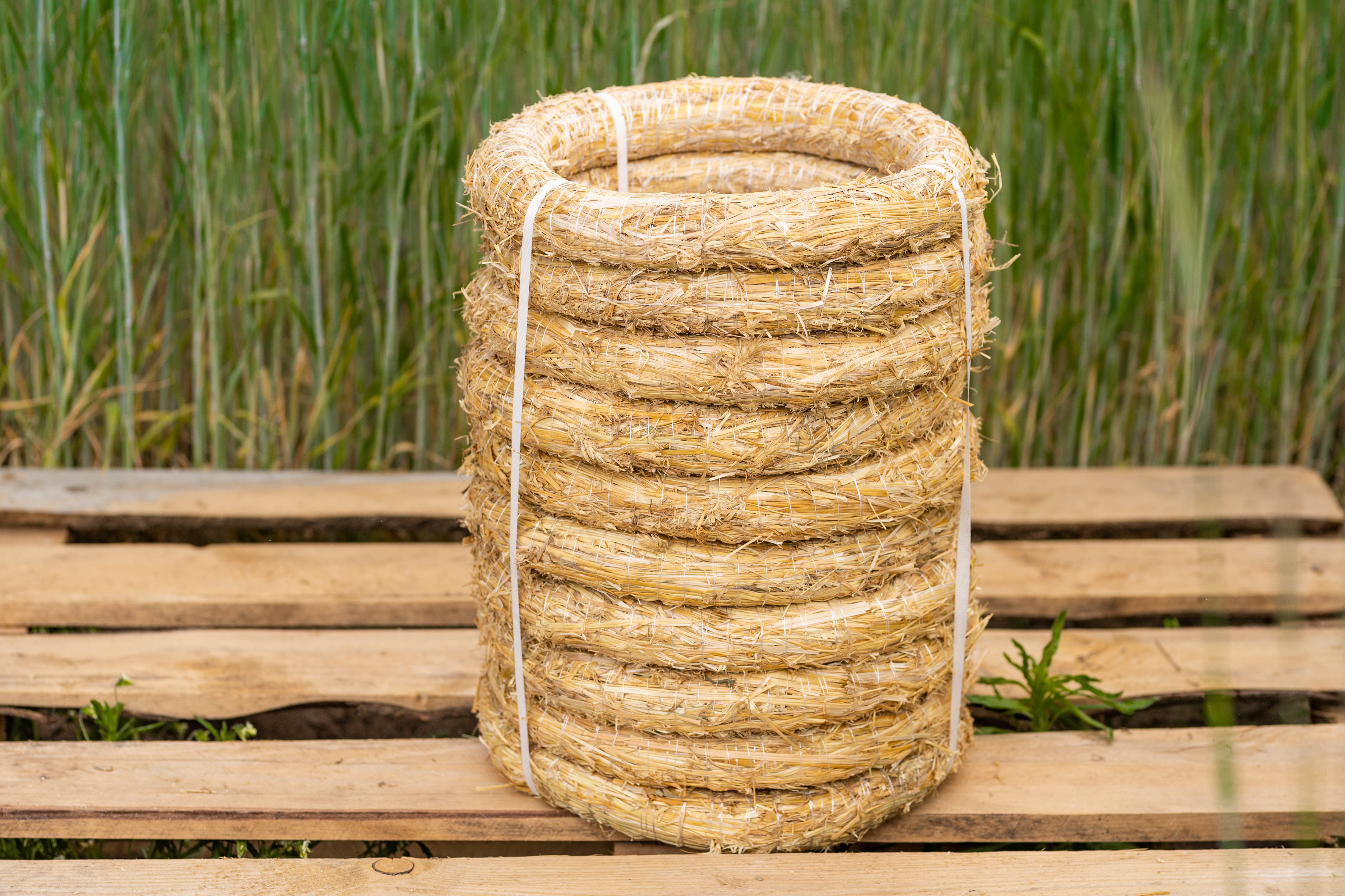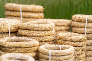 Die Lieferung der kleinen Strohrömer und Strohkränze erfolgt stückweise gebündelt, jeweils 5 bis 20. Die große Variante wird einzeln verpackt.